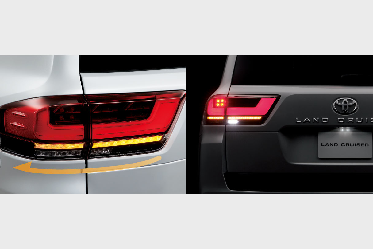 大型で端正な水平基調のデザインで、力強さと機能美を表現しました。光源にLEDを採用することで、後方を明るく照らしながら、省電力にも寄与。また、シーケンシャルターンランプが先進性を演出します。
