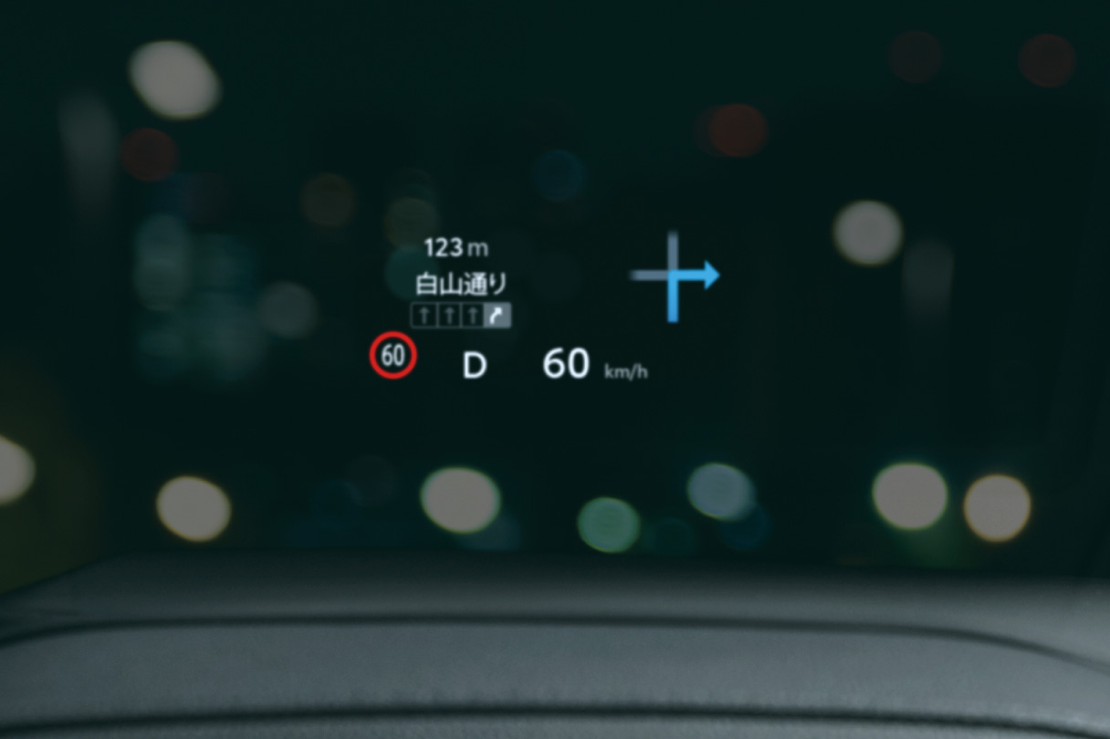 運転に必要な情報をウインドシールドガラスの視野内に投影。