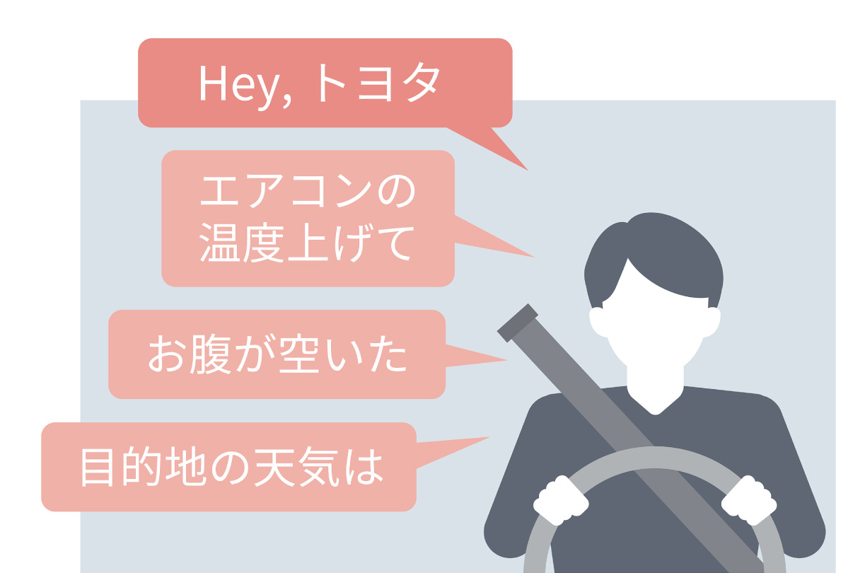 ※一部機能は、T-Connectやコネクティッドナビ(車載ナビ有)/コネクティッドナビ契約の有無に関わらずご利用いただけます。 ※「Hey,トヨタ」の起動ワードは、設定から変更することができます。