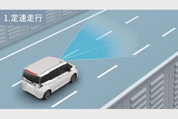 先行車がいない場合は、ドライバーが設定した速度で定速走行します。