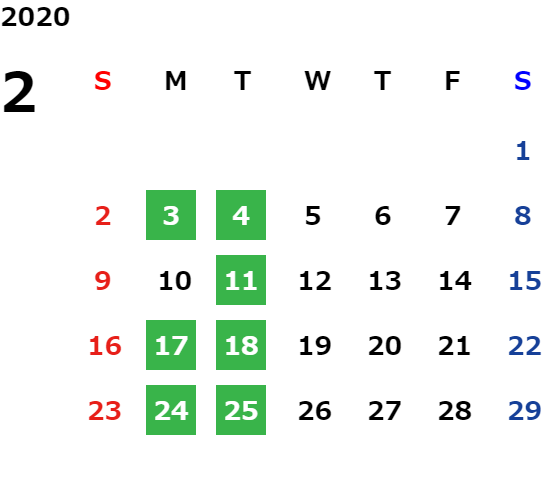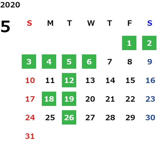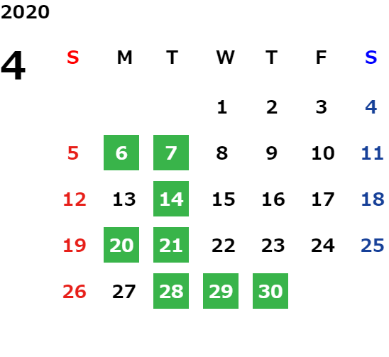 営業日カレンダー