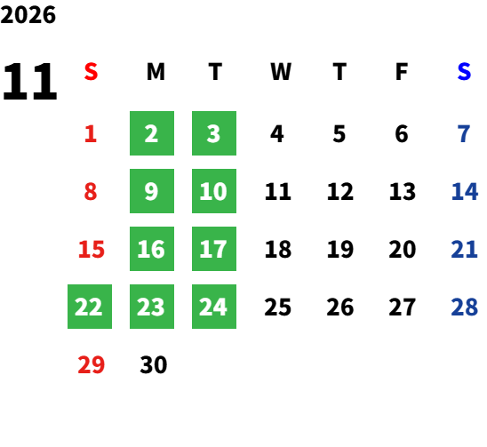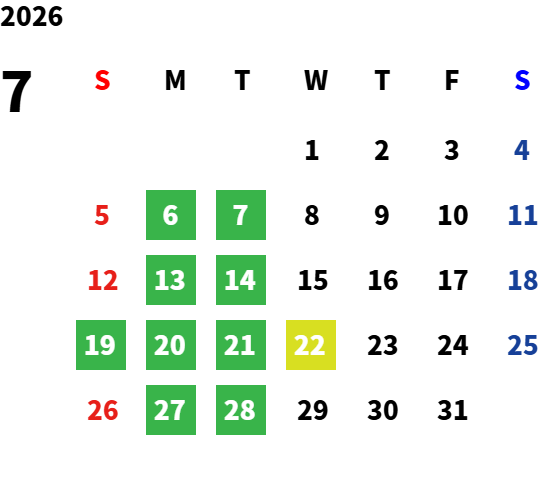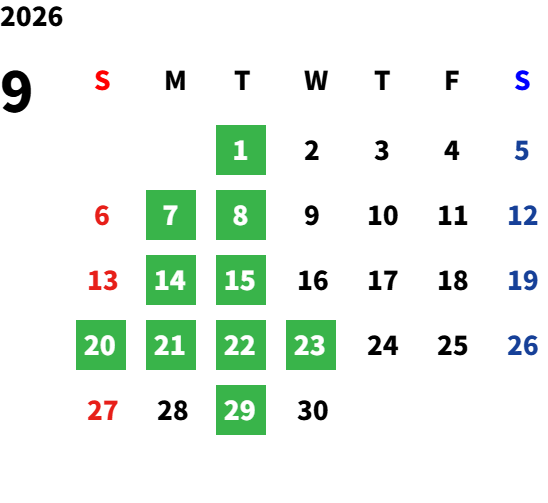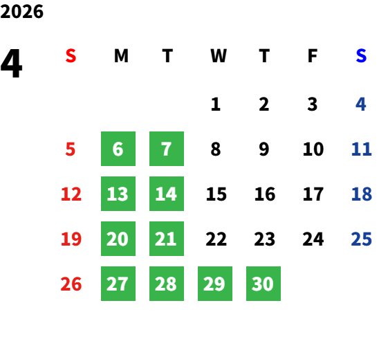 営業日カレンダー