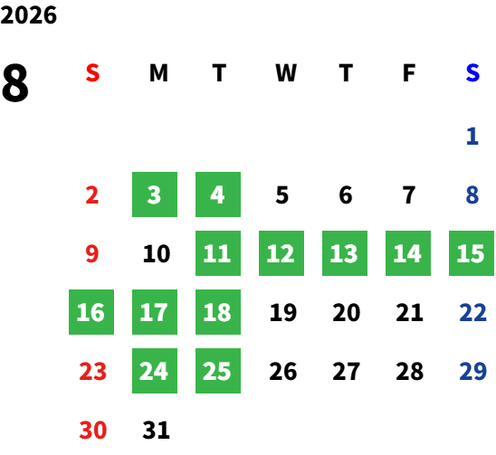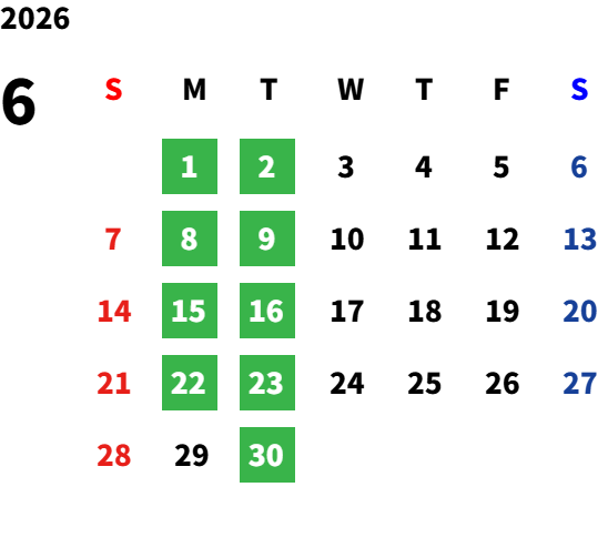 毎週火曜日、第1・2・3月曜日、祝日※5月・8月のみ月曜営業